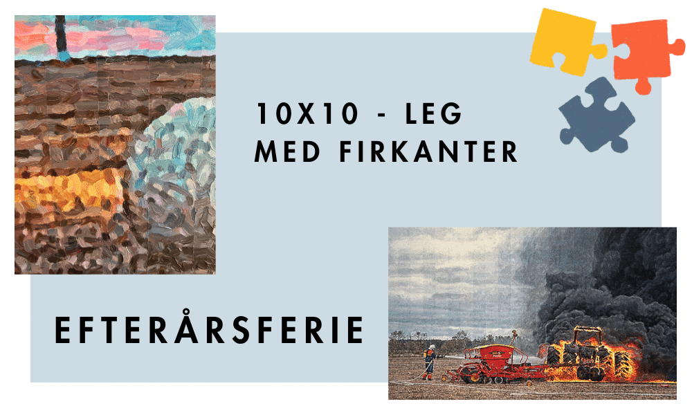 Tag familien med og kom til vores efterårsferieaktiviteter hos billedskolen. Vær med i det store fælles puslespil. Vi arbejder med egne små værker i 10×10 ved hjælp af forskellige materialer og metoder. Hver især skaber vi mindre værker, men sammen skaber vi ét større værk. Man er selvfølgelig velkommen til at tage sine værker med hjem på dagen.