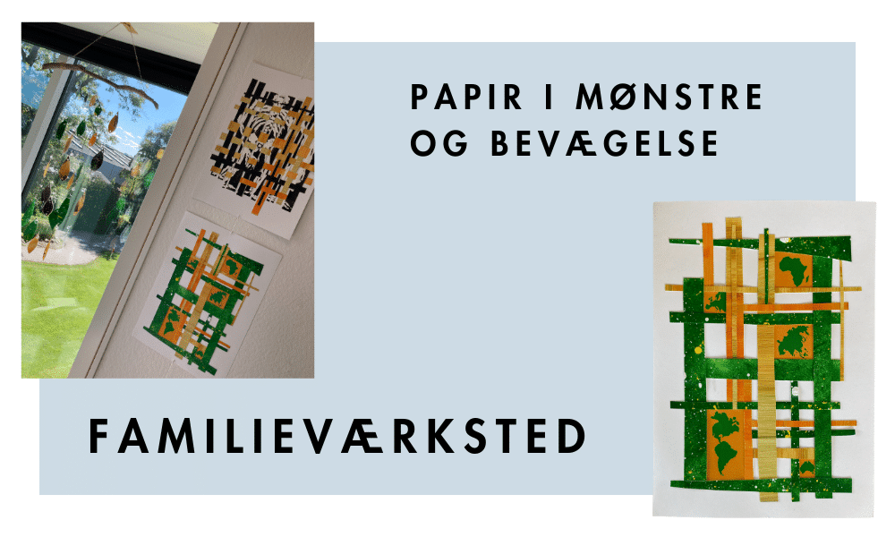 Denne gang at arbejder vi med mobiler, som svæver og drejer i luften, og vi skal prøve at arbejde med papirvævning. Her bruger vi genbrugspapir fra andre gamle værker eller bøger. I får skabt værker sammen, som I kan tage med hjem på dagen.